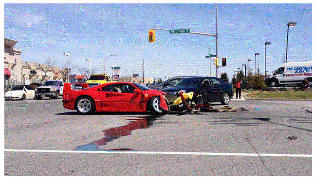 The insurance up here is a bit different,the F40 owners insurance will pay to fix it and go after the Dodge owners insurance for repayment.