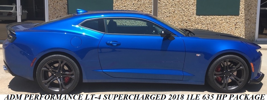 Thanks to GM and Eaton's most efficient head units and "Dual Liquid to - Air Intercoolers, ADM is creating supercharged nightmares ranging from 635hp to 840HP has now become the new "normal" and the next generation of Chevrolet Camaro SS,Corvette and soon to be released 5.3 and 6.2 liter truck. With only 4.5 - 7.9 psi on pump gas or E85 your 2016+ Camaro SS can enjoy a gain of 160+ HP TO 200+ HP to the tires, ADM Dual Heat Exchanger Intercooled System coupled to the LT4 head unit will do just that. The addition of the Stage II E85 Flex Fuel system upgrade will yield 50+ rwhp horsepower at the same boost level as 91 or 93 octane. Here are 2 2018 1LE Camaros that were completed and delivered to their owners just days ago. Car #1 |
