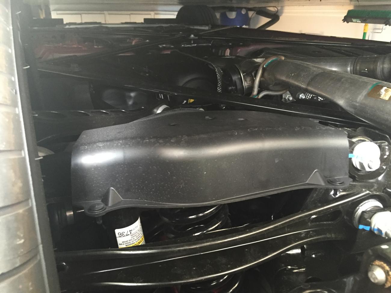 The black piece of plastic in the left of the picture (two of them) is what I am referring to - it is the EXACT parts I found in my trunk (along with the plastic pieces that go under the bumper). The service manager said they should have all been installed when they received the car, took it back, put it on the lift, and then brought it back out to me. The black piece is no longer in my trunk.