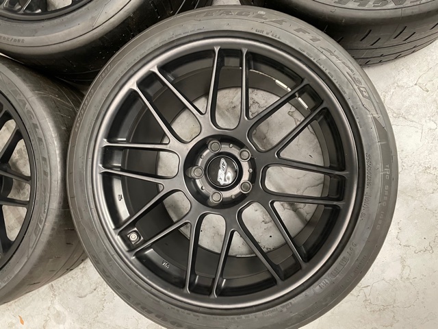Satin black Apex wheels with brand new sticker tires. Not a single mile on them. GY SC3Rs. Fronts are 19 x 11 ET11, the rears are 19 x 12 ET41. Used these as my second set of wheels, mostly for track days. No blemishes at all, no damage, perfectly round. Used on my 2019 ZL1 1LE. Sold car so I have no use for them anymore. Not interested in shipping. Local pickup in Naples, FL. $2,400