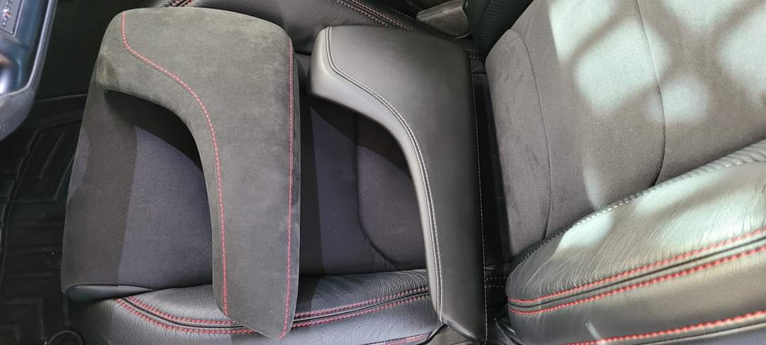 another one of our best seller armrrest is done! zl1 style charcoal alcantara with extra foam and red stitch to match the oem zl1 / 1le interior pm me if you want one!