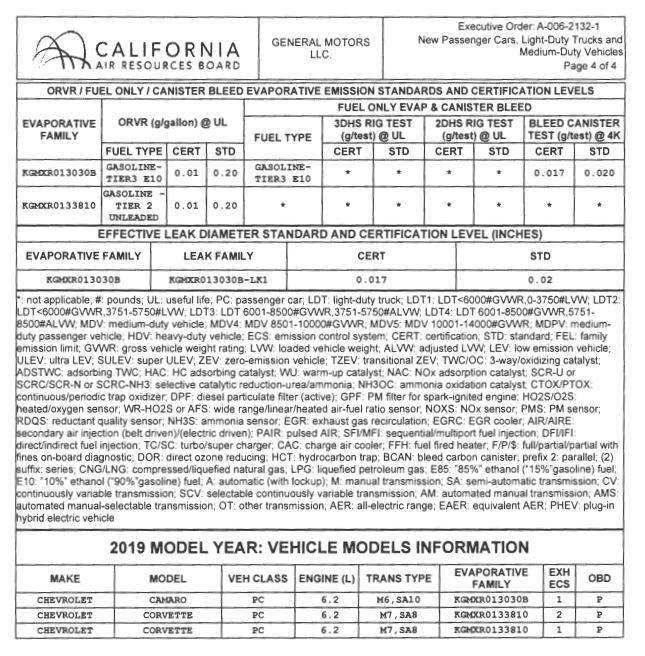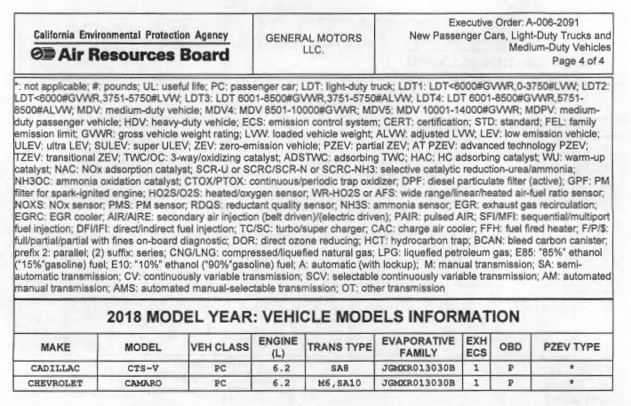 the evaporative family is the same as the for the cts-v and the camaro in one picture and the camaro in the second picture. the corvette has a different number which leads me to think that they are referring to the ZL1