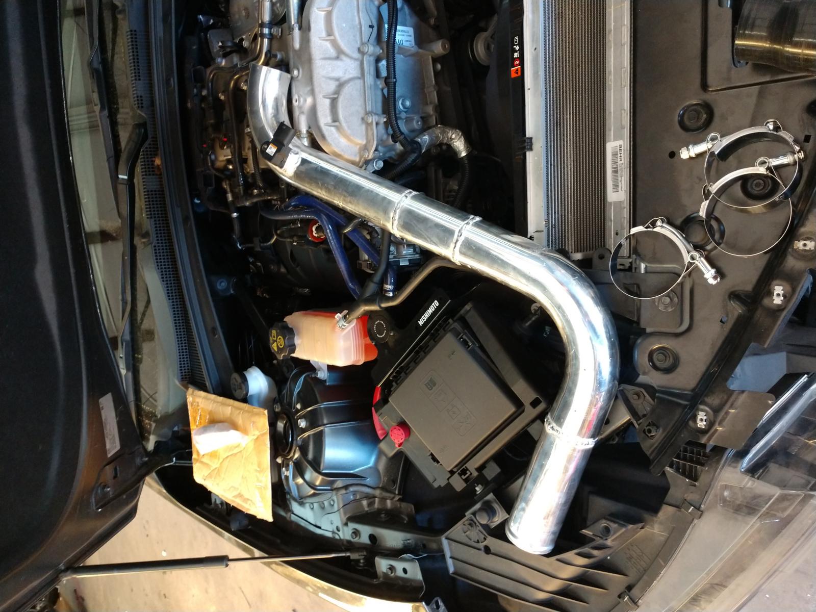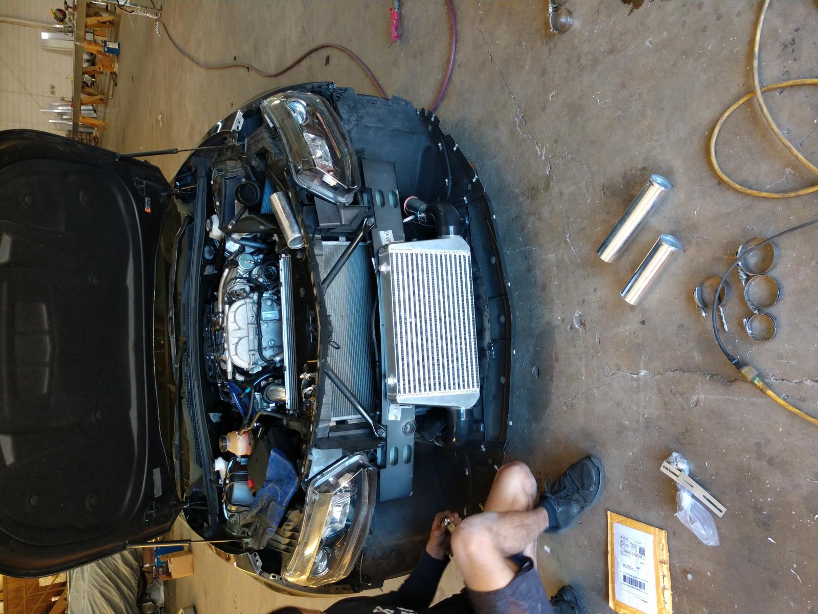 Finally got the job done, end cost was 550 bucks. Some bumper trimming had to be done but could be avoided if you pick a different intercooler size. The stock intercooler was left in place and the universal piping snaked around it.