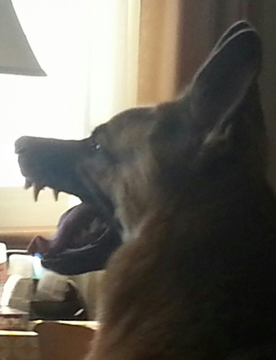 No problem......Like your sig pic. I used that pic with the caption "Show me your war face" with a pic of my Shepard showing his teeth. I trained him to do that