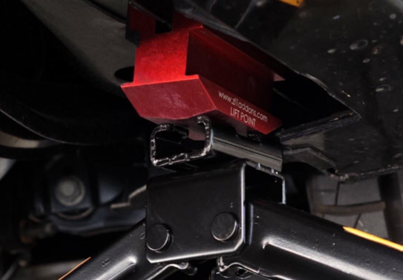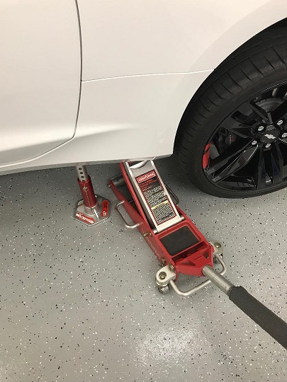 1. Equipment: (4) Torin 6000 lb aluminum jack stands purchased at Pep Boys, (2) 4000 lb jacks, and ZL-1 Addons Permanent Lift Pads for Gen 6 convertibles. 2. Equipment Locations: I started with the front and used the Cross Brace attachment bolts shown in the photographs as the points to locate the floor jack saddles. For the front, I used the outer bolt (circled in red) and for the rear I used the inner bolt (circled in yellow). The Torin jack stands have a saddle that fits the ZL-1 Lift Pads perfectly and the base on them is small enough that interference between the floor jack and stand is eliminated. In my method, a wider based jack stand would not have worked due to interference problems. 3. Jacking Procedure: Since I wanted to avoid twisting the body, I centered the jacks on the cross brace bolt (circled in red) in the front and gradually raised the car by going from side to side in small increments until I got to the height I wanted. After making sure the front was secure, I used the inner cross brace bolt (circled in yellow) to raise the rear using the same side to side method. Conclusion, I was getting the car ready for the Dallas Autorama so thoroughly cleaning wheels, wheel wells and the bottom of the car was a necessity. Using my method, I heard no creaks in the body, or other evidence of twisting or misalignment. Also, the stands are extremely secure, take up the smallest amount of room possible, and don't scratch the floor. Yep, my method ain't cheap but it costs a lot less than the damage accruing from my beloved Camaro falling off a jack. Attached Images __________________ 2018 Camaro 2SS Redline Convertible 2017 Colorado Redline 2018 Harley Davidson Fatboy 114 Last edited by ac-427; 02-11-2018 at 06:15 AM.