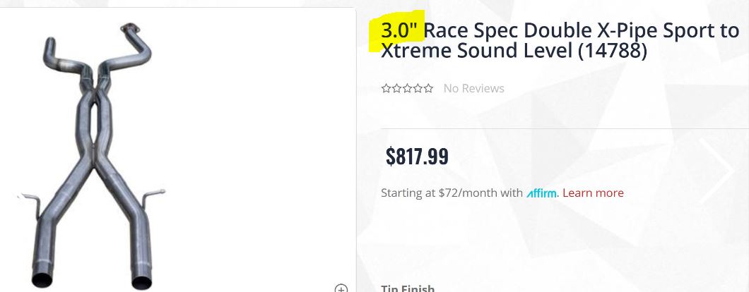 I was thinking an aftermarket X-pipe was already there. Time to complete this full exhaust and ditch the factory stuff. Corsa just released a new Race Spec with double X-pipe that would be a good option too. $817