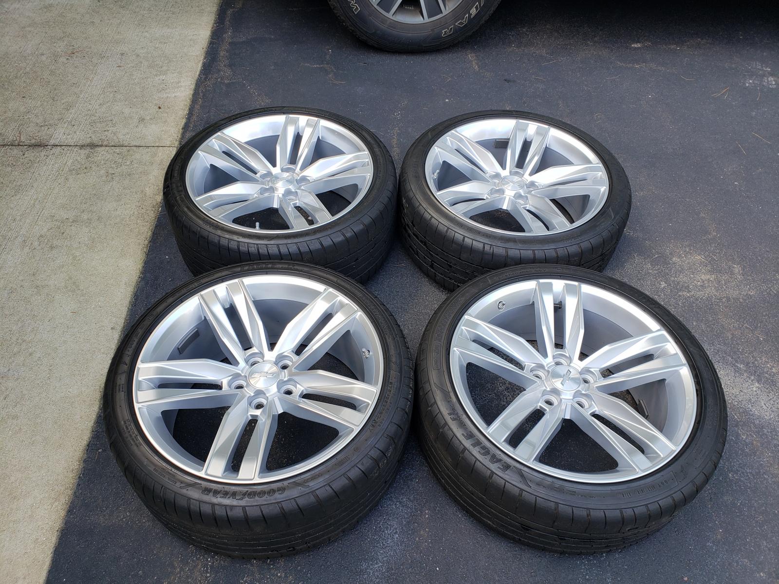 Original silver, split-spoke wheels and Goodyear run-flat tires that I changed out on my 2017 SS Convertible. Front 245/40R20, rear 275/35R20. 6,000 miles on them. In good condition, no defects, not driven hard. $750 plus the cost of shipping from Midland, MI area.