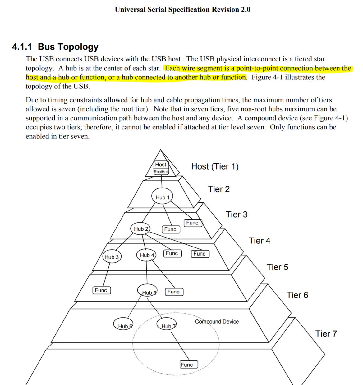 The controller isolates USB devices from hearing other USB devices as well as arbitrates when devices of different standards are connected and notifies the host of a new device. None of these things would happen if two ports were physically connected. Please see the USB specification. http://sdphca.ucsd.edu/lab_equip_manuals/usb_20.pdf