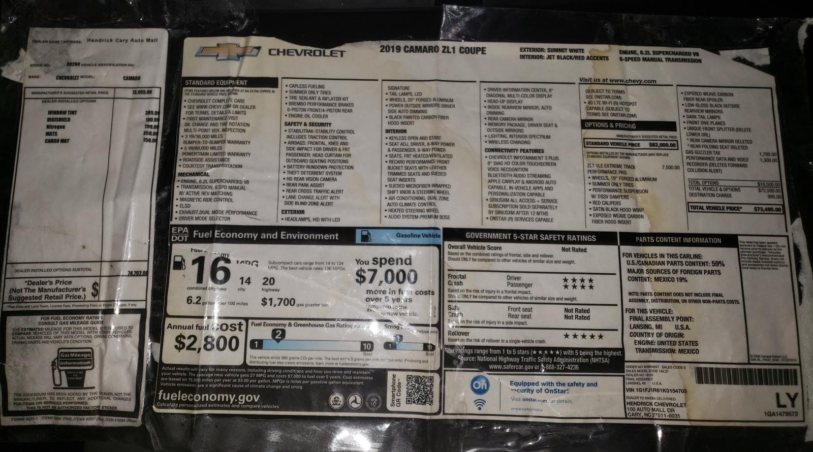 FS: 2019 ZL1 1LE M6 - 10k Miles - NC (SOLD)