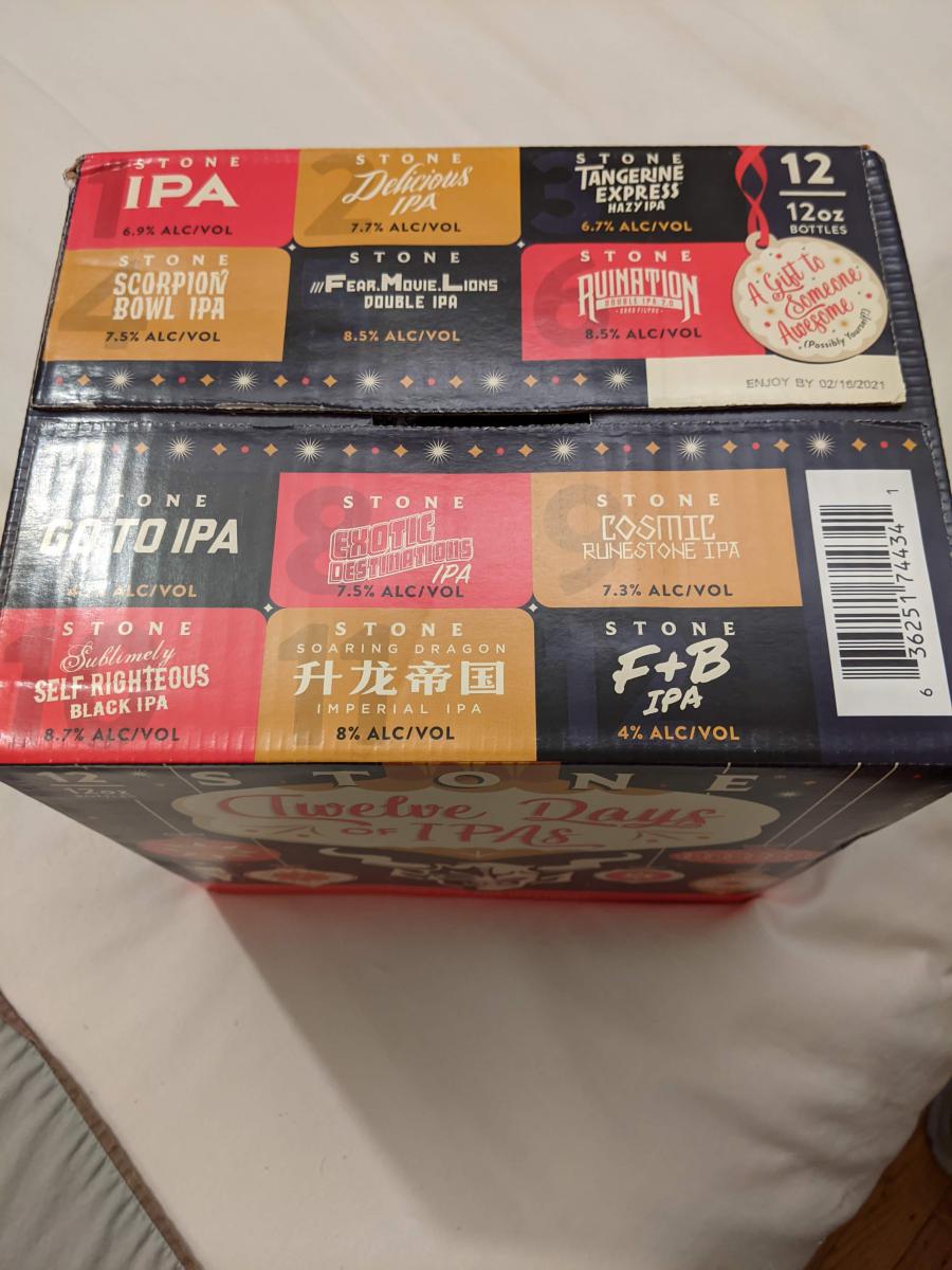 For the beer front, I just picked up this Stone 12 Days of IPAs box. So in a couple of weeks I'm going to be doing a little advent calendar of Stone IPAs leading up to Christmas. Have a friend that was able to grab a box of it too, so we are going to coordinate and enjoy them as if we were hanging out and splitting different beers.