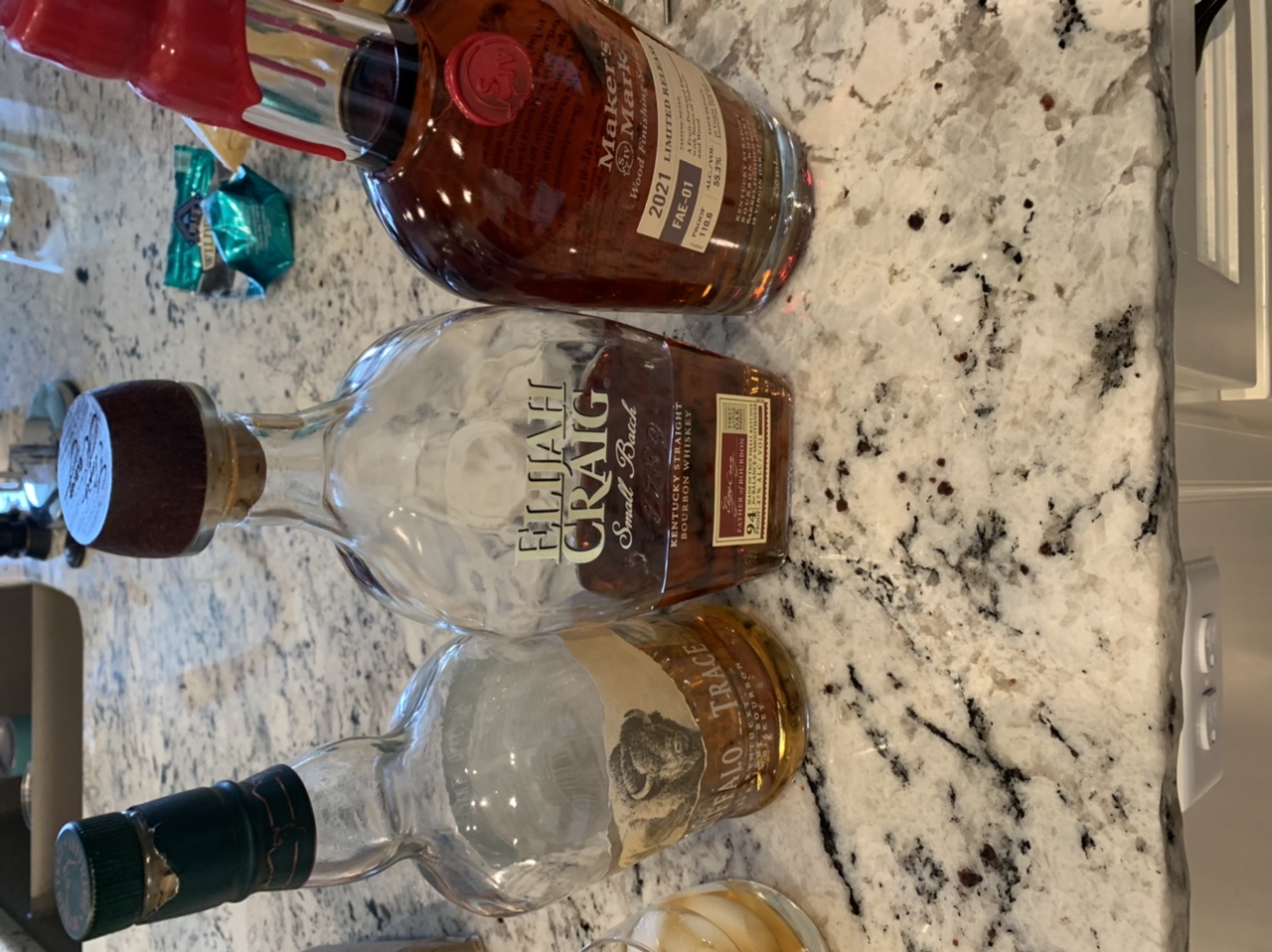 We have a big bottle of Crown that was a gift as well as a half evaporated bottle of 1800 tequila that i might have to regift.