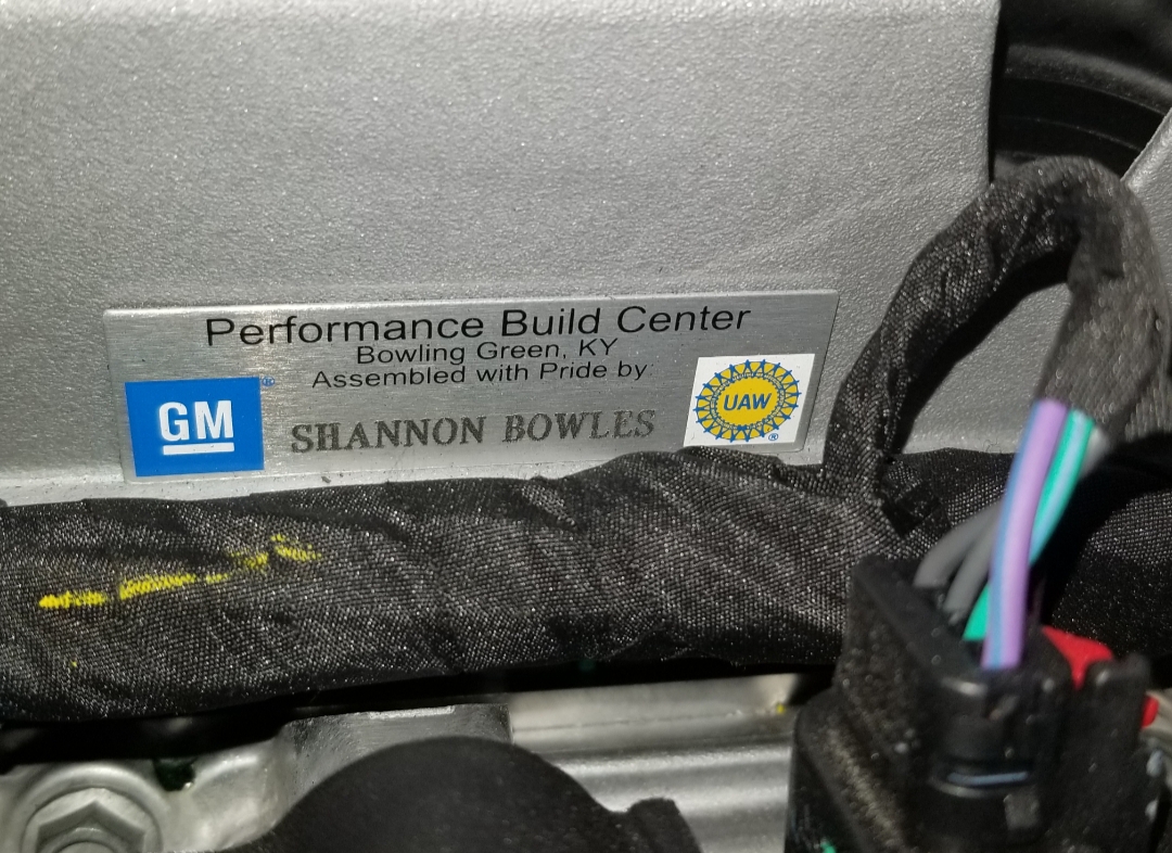 Another plaque here. Have a 2020 LT1 M6 built on 2-13-20.