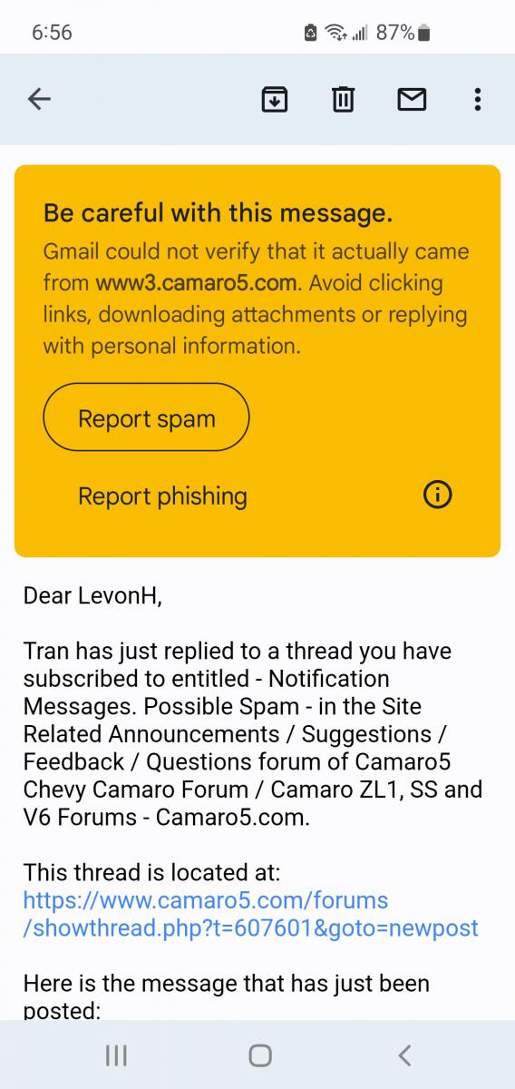 admin@www3.camaro5.com is the source. Gmail message says it is unable to confirm message came from Camaro5.com