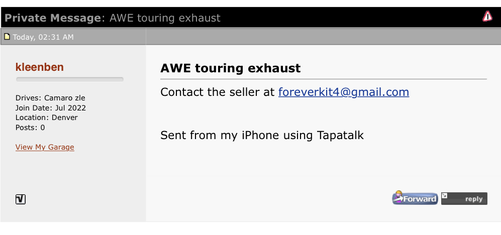 How do you know the seller is legit? Yeah he can have the AWE exhaust but would you send someone from a forum that’s a complete stranger money through PayPal friends and family or cash app?