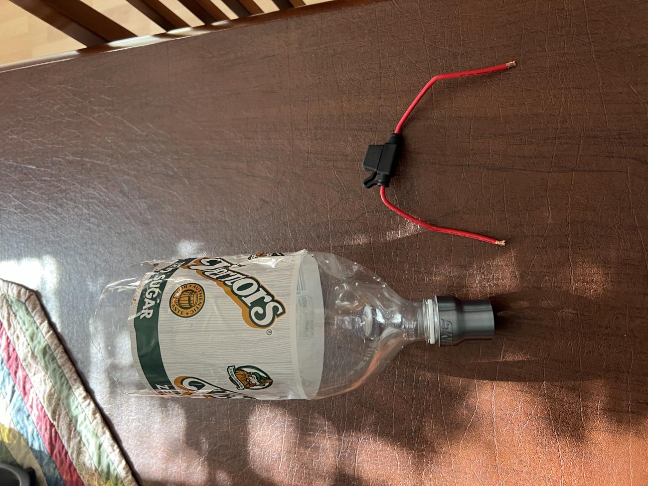 Yesterday I attempted to purge the intercooler system of air using a Dedicated Motorsports adapter and a 2 Liter pop bottle with the bottom cut off. I put a small amount of distilled water in the pop bottle.