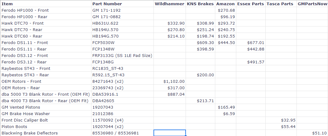 As we modify our cars especially for track purposes, many of these parts are NOT something you can readily look up in a GM parts catalog or website. You can certainly keep all the receipts that you accumulate as you buy parts and then refer back to them when it is time to reorder. The problem here though is those receipts can get lost and there can literally be hundreds of them.