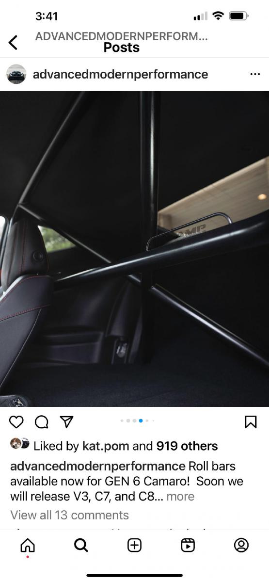 The one you see on this ZL1 weighs MAYBE 30 pounds and is WELDED, NOT BOLTED to the floor. The fabricator at AMP that makes these used to work at BRINKS RACECRAFT who is widely known as one of the BEST fabrication shops in the business. The bar is REALLY REALLY tight to the body lines inside the car with less than a fingers clearance between the bars and the inside of the body panels and roof. You cant really tell from OUTSIDE the car that it has a roll bar.