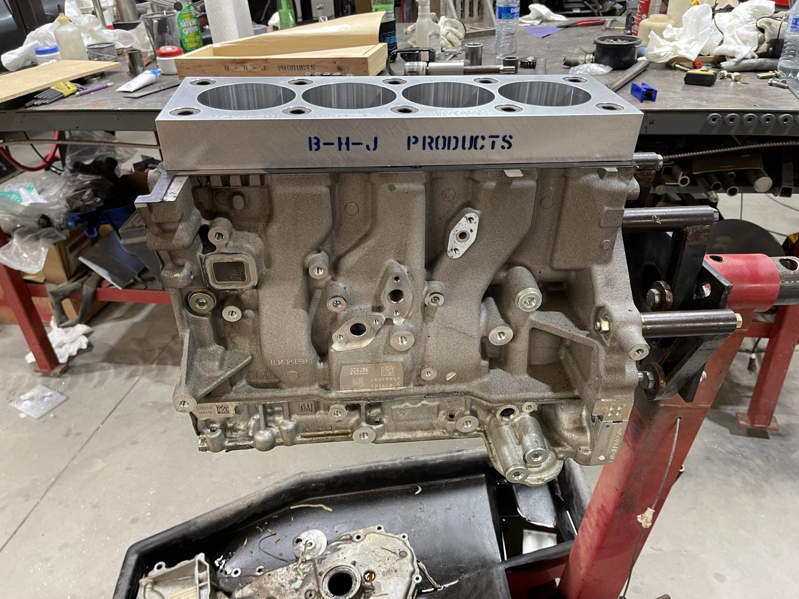 I've had my pistons/rods for awhile, but finally have all the parts for honing the block so I can install them! ARP 11mm head studs of "2000" series material will add a little clamping on the stock head gasket, took awhile getting these! BHJ made the torque plate. Next will be honing the cylinders for the forged JE replacement pistons.