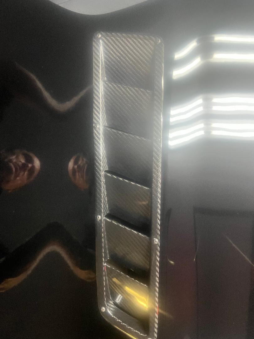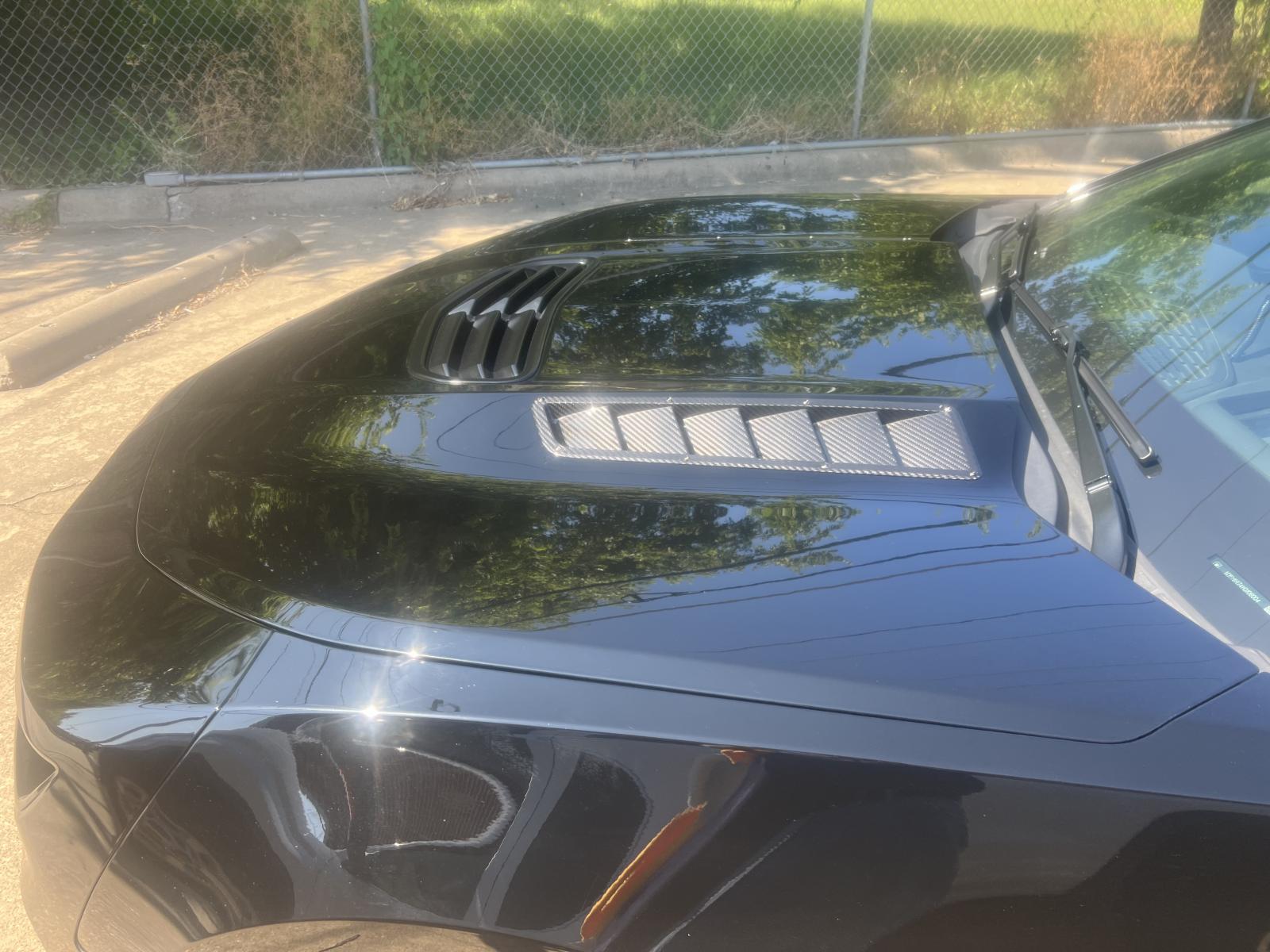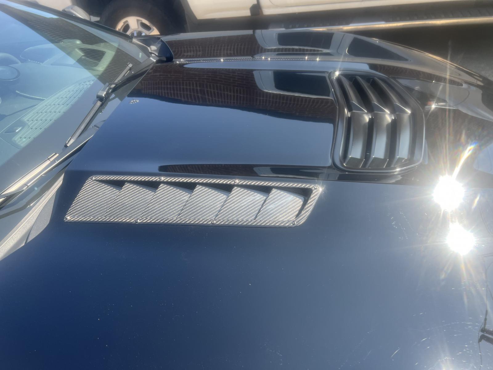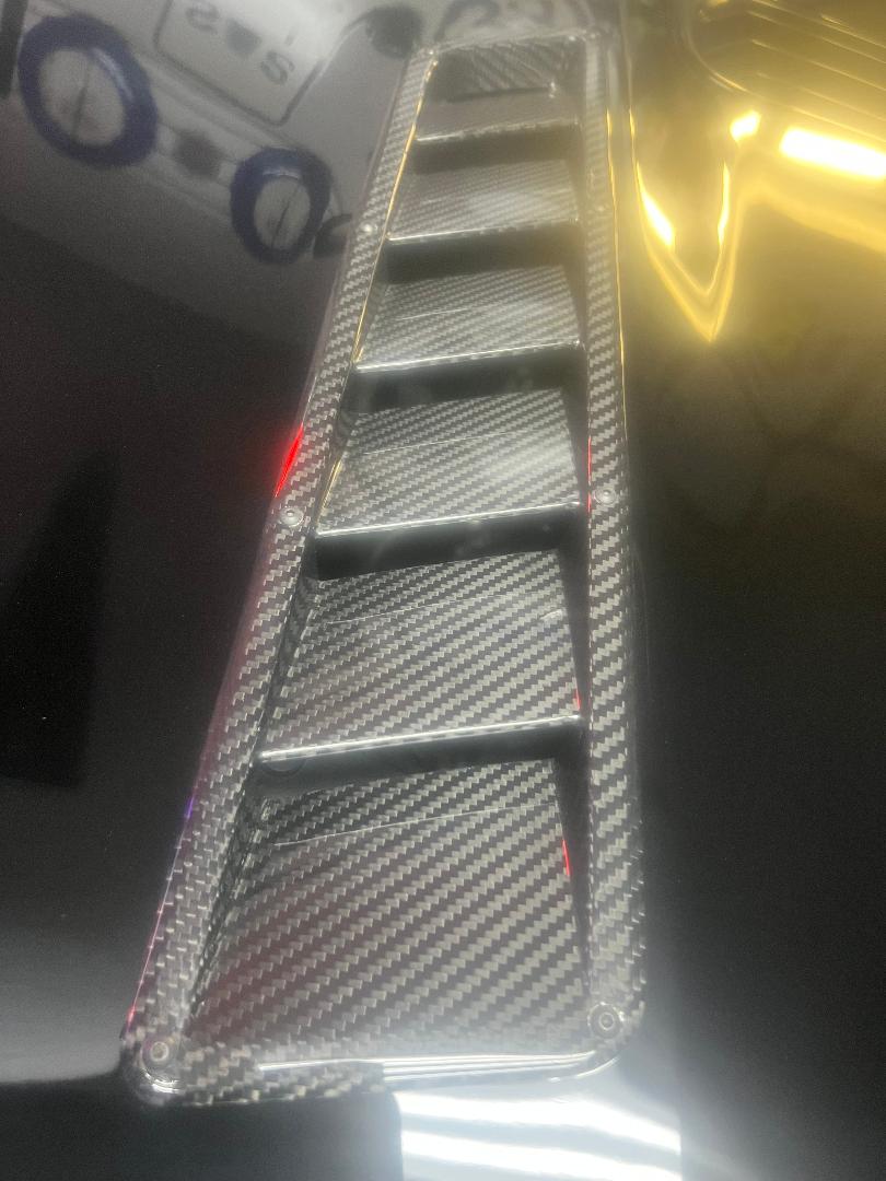 Well with the 100 degree heat down here the under hood temperatures were getting too hot when I was tracking. How do I know??? Well I cooked two starters over the last couple months due to excessive heat. So I am having AMP install these carbon fiber APR hood vents directly above the header area in my SS hood.