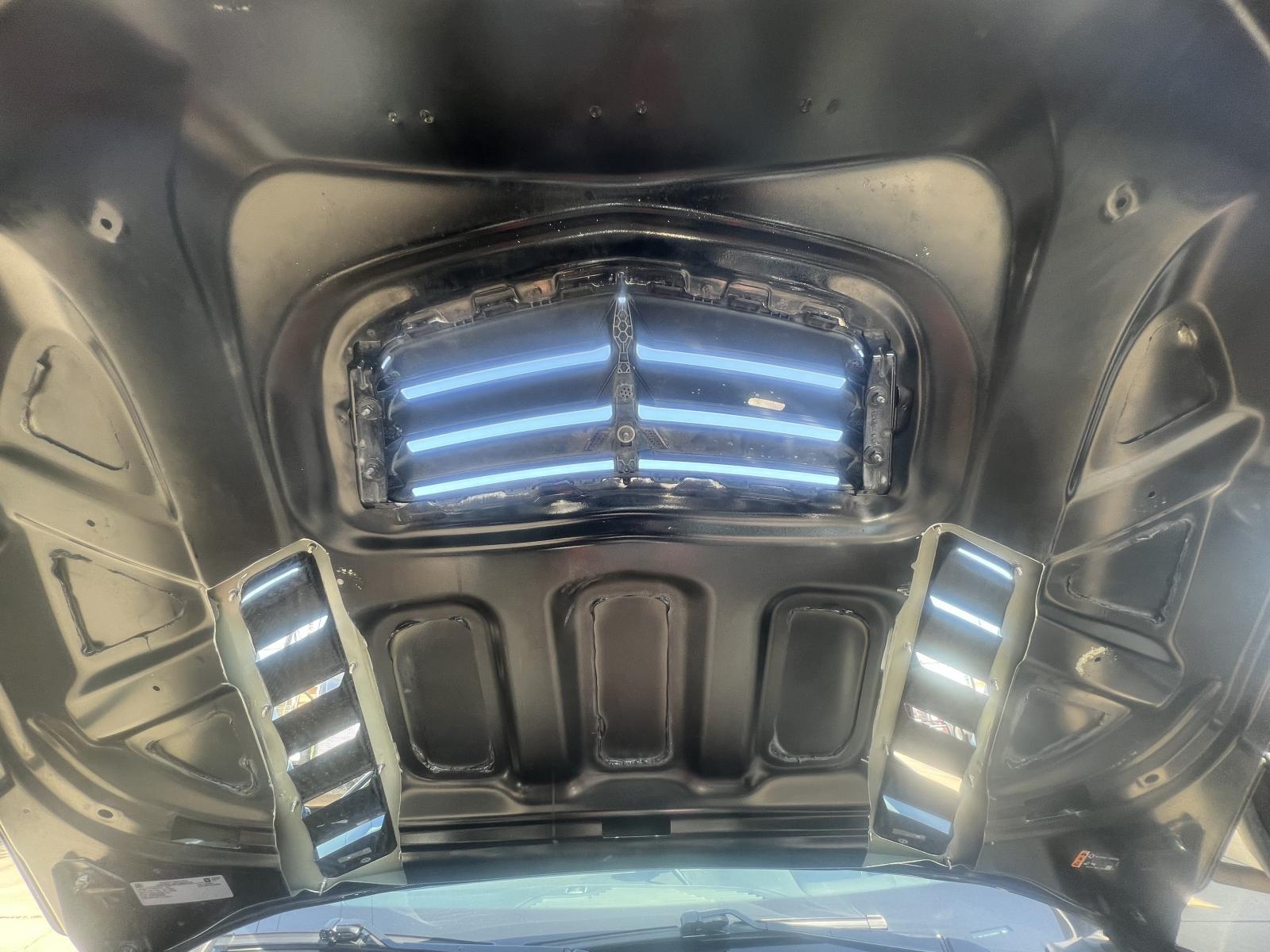 Looks great. I've noticed a lot of heat coming out of my hood vents. Also helps with increased front downforce (reduced lift). Hopefully helps you issue