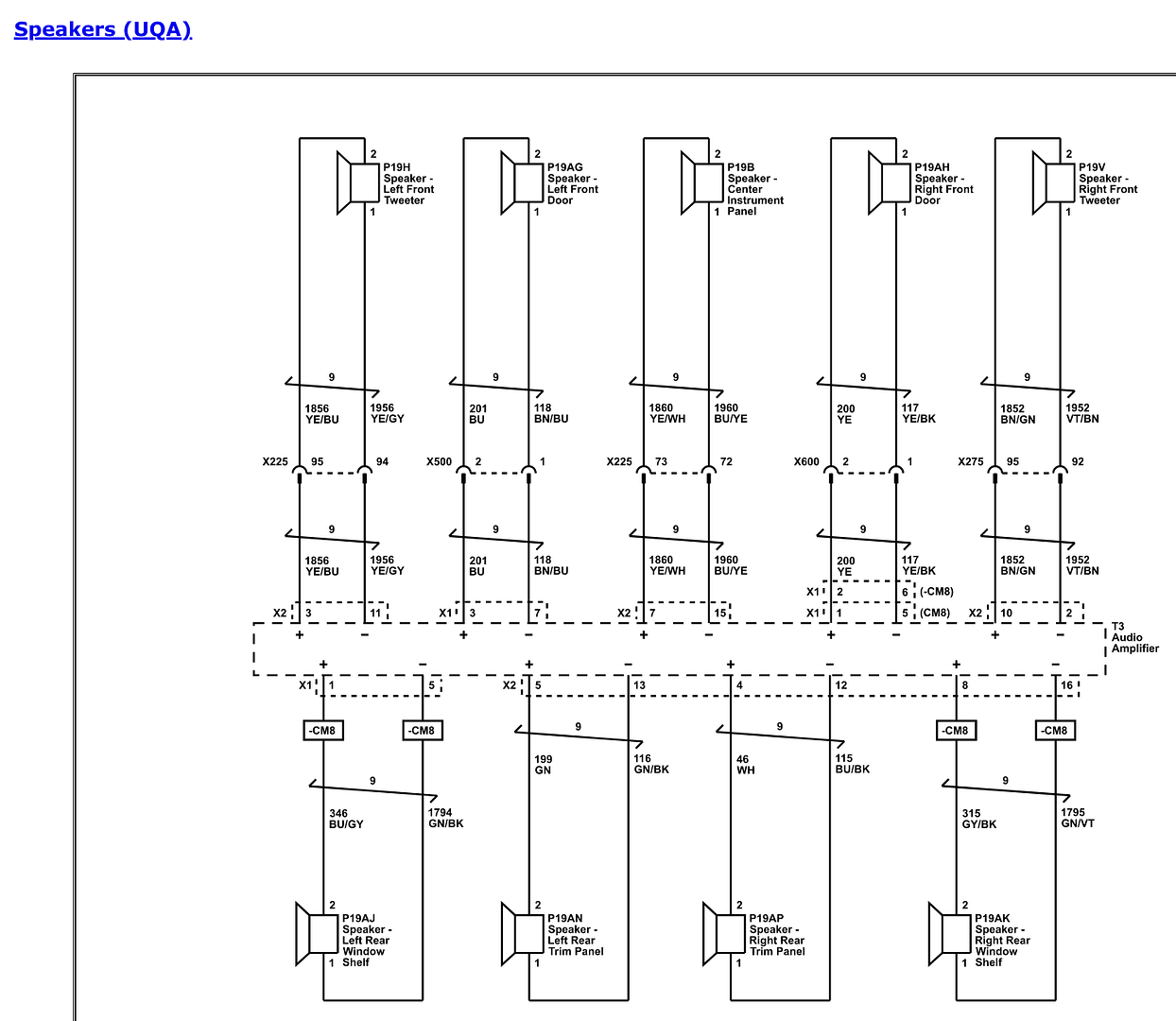 These are the speakers. This is for a 2023 with Bose (UQA option), all schematics are available on ACDelcoTDS; for a 3-day subscription you can snag everything you need.