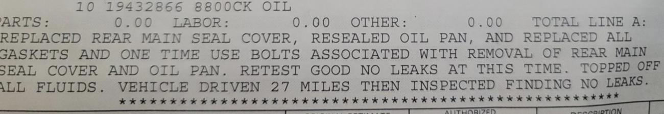 Looks like they did the rear main seal on the engine, or should I say everything but actually physically changing the seal? Which is probably what they will do next