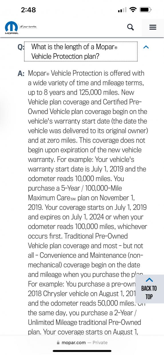 I also added an example from the Mopar extended plan on how their coverage starts on the date of first sale.