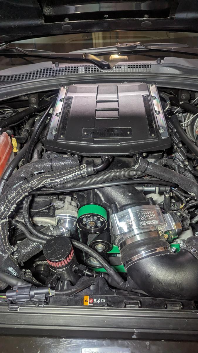 2017 Chevy Camaro 2SS A8 Whipple 3.0, Mast Black Label heads, ATI 8L90, Fore triple in-tank pumps, 112mm TB, LPE +52% injectors & BB HPFP, TooHighPSI/Katech port injection, 15” conversion 1066 WHP STD/1027 SAE, 9.10@152.5 (new times coming)
