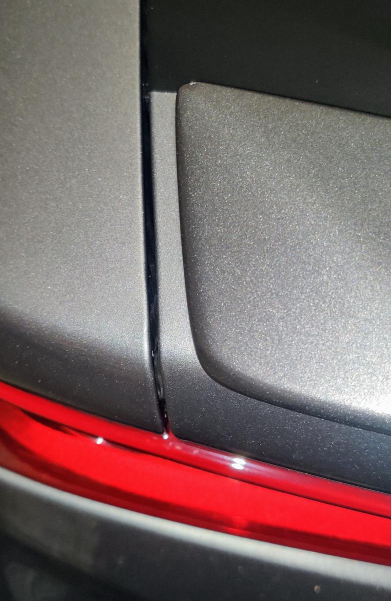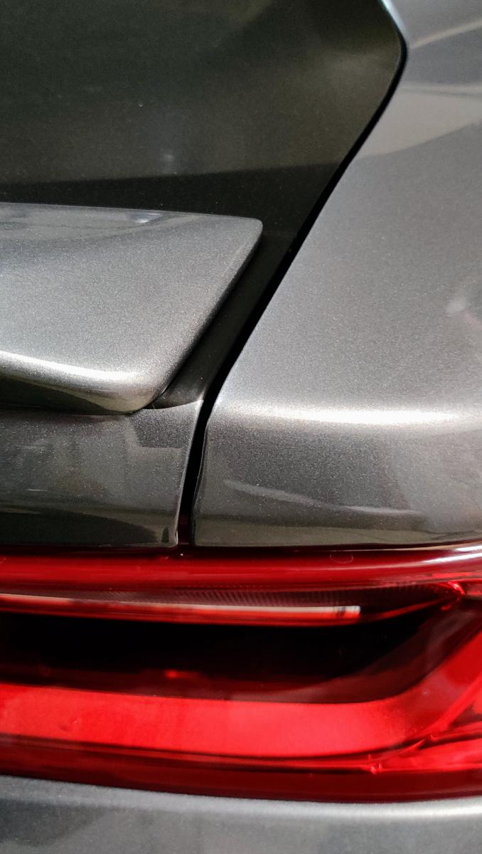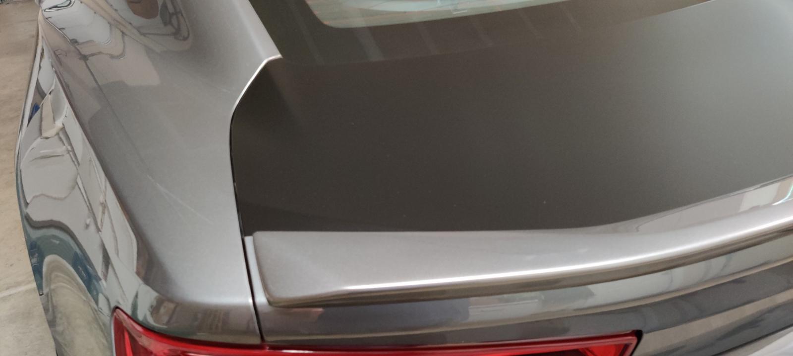 I've wrapped the hood, roof, and trunk lid of my Satin Steel RS. I had the trunk wrap run across the entire trunk lid up to the blade spoiler. I've left the spoiler body colored. While I like the overall look, there are two narrow body-colored strips of trunk lid at the ends of the blade spoiler. I keep thinking there must be a better looking way to have done the trunk wrap, but I am not sure what that is and am soliciting suggestions. The first two photos show the slightly annoying look I am talking about. First, some options I think are off the table, but feel free to convince me I am wrong here: (1) If the blade spoiler had extended all the way to the ends of the trunk, problem solved - but even if there are spoiler options that do just that, I would prefer to keep the factory RS blade spoiler. (2) I have seen folks just wrap the top and back of the trunk lid, but I want to keep the wrap solely on the horizontal portion of the trunk and not have it extend over onto the back. (3) I don't see just wrapping those thin strips at the end of the blade spoiler as a solution because I think that would look similarly "unfinished" as the current layout. The third photo below shows that these annoyances aren't all that obvious at a distance (so maybe I need to just get over it?) The white lines on that photo show two wrap options I have thought about when looking at the annoying end gaps. Option 1: As roughly shown by the white line on the left side of the photo, the option to have the wrap run straight back from the left and right edges of the rear window - sort of like a big black stripe continuing from the roof. Option 2: As roughly shown by the white line on the right side of the photo, the option to have the wrap run inside the body line that comes down from the roof alongside the rear window and follows that same line onto the trunk lid. This would create a "fan" stripe that angles outward until it runs up against the blade spoiler. Or maybe you have an even better option that I haven't considered? Thanks in advance for any comments or suggestions on how I might fine tune the trunk wrap! |
