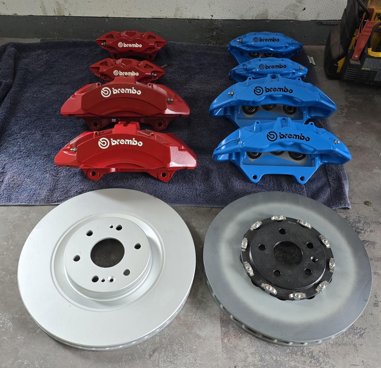 About the same cost to buy new so I could paint them before install, fill up the 20" rims better and better braking. I will sell the factory red Brembos with rotors once done.