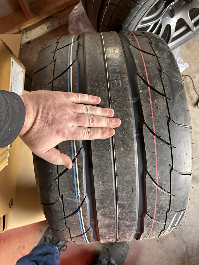 New tires mounted to the new wheels. Not sure the stock lug nuts will work so I am waiting on those and I will need to do the wire harness move before I throw these on the car.