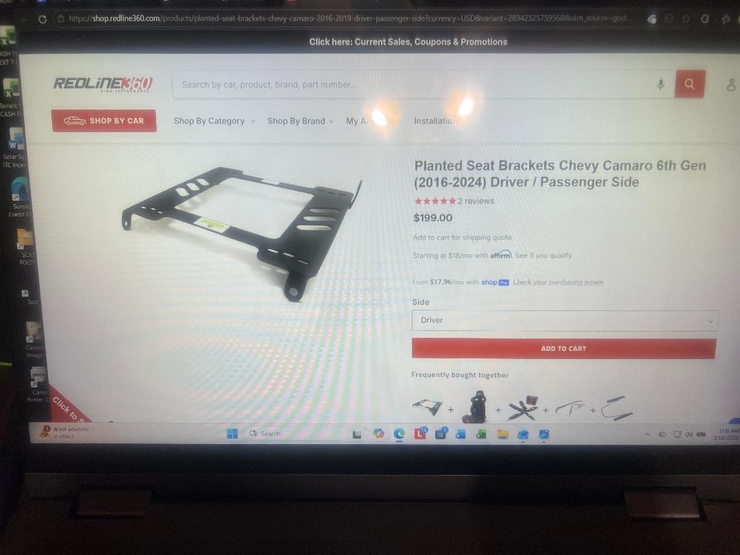 IT will include the SIDE SEAT mounts (steel) and also PLANTED technology seat bracket. I had it in my 2019 Camaro. New cost was roughly 2000 dollars with brackets and side mounts. I am in DFW area and would prefer NOT to ship. I will come up to a 100 miles your way NO COST to you. $1200 dollars OR I will trade straight up for a SET of ZL1 seats in VERY GOOD condition. TEXT is BEST 817-919-6866 GREG