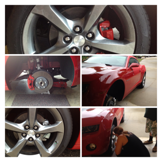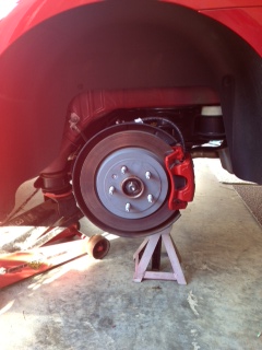 Just sharing what I did over 2 weekends. I was able to view how to jack my car up on this website and do the front and back calipers with Dupli color Red caliper paint that can withstand 500 degrees, that I bought at a parts store. We made sure to use the brake dust spray, use alcohol to clean off the calipers and the masking and taping the calipers took about an hour for each one. The paint looks great, matches the car, I hope it stays for at-least 3 years, because then I will just purchase the name brand calipers. Its a lot of work, but very worth it. I am pretty happy. We let the paint dry after 2 coats, then I would bake it a bit, with a regular hair dryer. One set was done in humid weather and the other two were done on a sunny day. Driving home a few hours later was fine. The back caliper had a reaction to the first coat and the silver dots (caliper color) came through. I cleaned this section off with nail polish remover, and cleaned up with alcohol, and re painted the spot and it covered just fine.