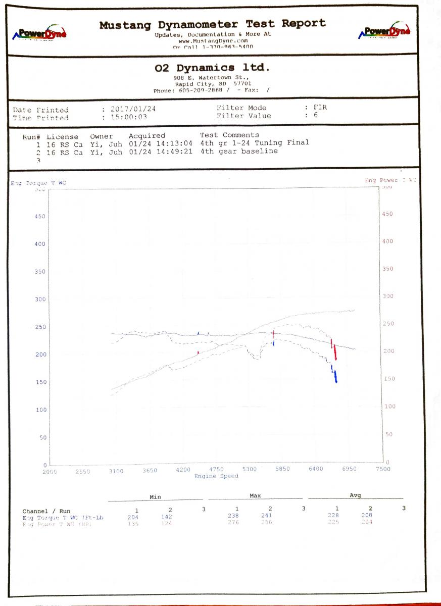 if you follow the link the original post states +30whp and +25wtq gains with intake and tune. if i'm looking at the dyno sheet correctly the runs marked 1 are with CAI & tune and run #2 is with the CAI and without tune as stated by the original post. i am puzzled by the time stamp though as run 2 was done roughly a half hour after run 1. so they installed the intake and tune dynoed and then reflashed to stock to dyno again? puzzled as well. hoping someone will have an opportunity to do a bone stock run. do the complete install and tune and then dyno again to see the results.