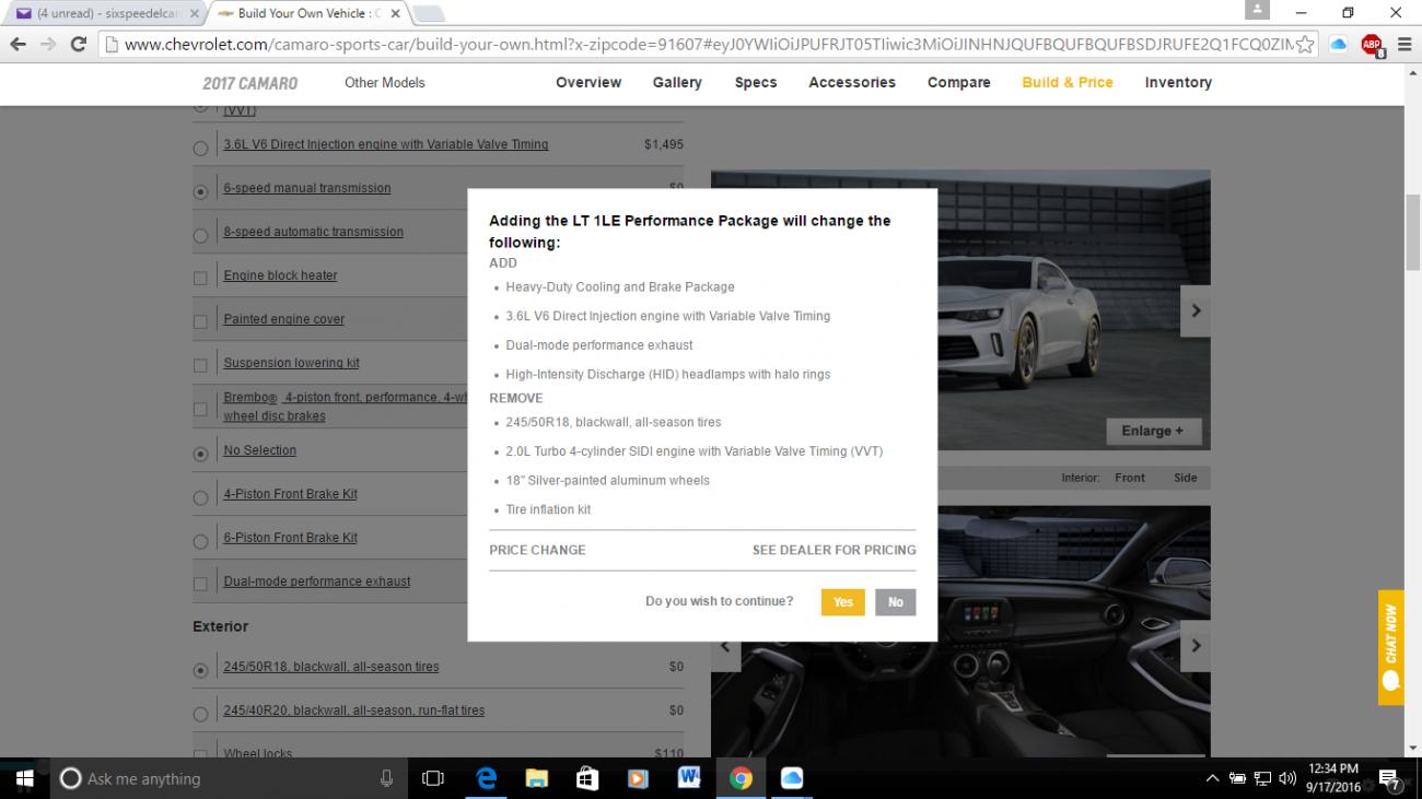 After reading the recent Car and Drive Lightning lap articles on both the V6 and SS versions of the 1LE, I proceeded over to the Chevrolet.com website to do a build and see what one might cost optioned the way I want it.