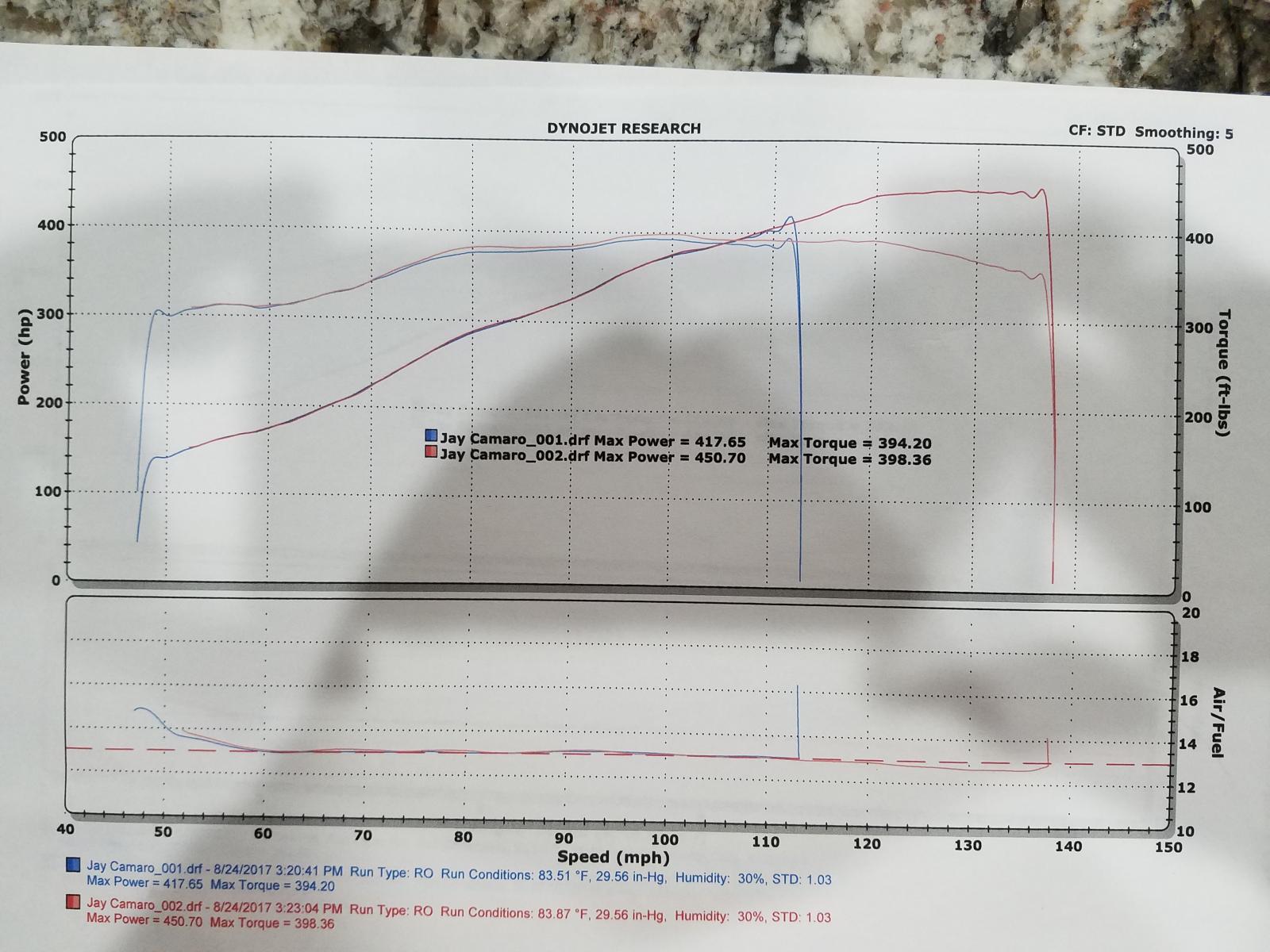 I am assuming this is pump gas. But since you are M6 you are in the 1:1 gear. Your graph is exactly what I have been talking about in this thread. The cam is a mismatch for the heads and there was basically a loss of a full point of compression. So your TQ numbers took a huge hit. The 450rwhp number wouldn't be bad if this was an A8 in 5th on pump. On almost any DJ M6 cars put out over 400rwtq stock. Unfortunately the bigger kick in the nuts is that these numbers are STD which are about 10rw higher than SAE that we are all used to seeing. Do you know if your tuner logged Cam Phaser timing? I also wish you had and RPM graph as well that we could look at. I am not trying to be a downer. Just trying to help with an honest assessment. I guess you could also look at the clutch and rear to ensure you aren't loosing anything there. We will have to wait and see how these other GM builds turn out to completely pass judgment on this combo.