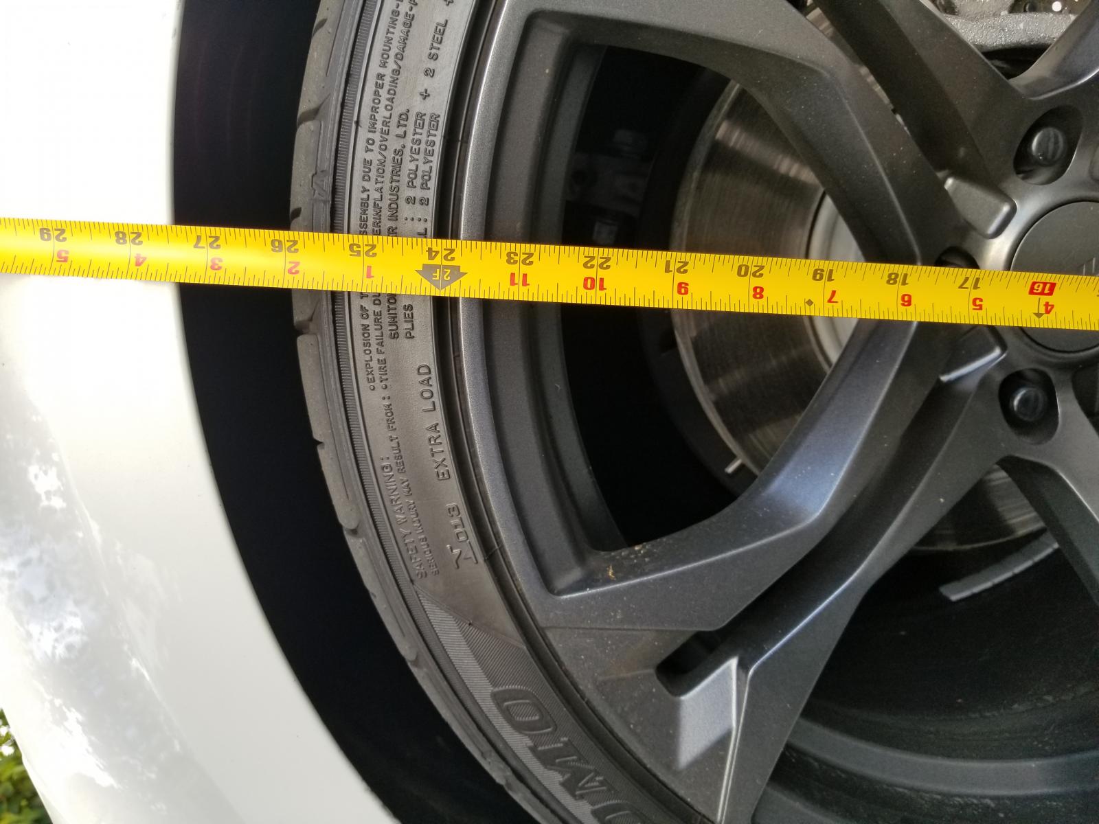 I'm currently running 285-30-20 and according to Tirerack the dia. is 26.7.