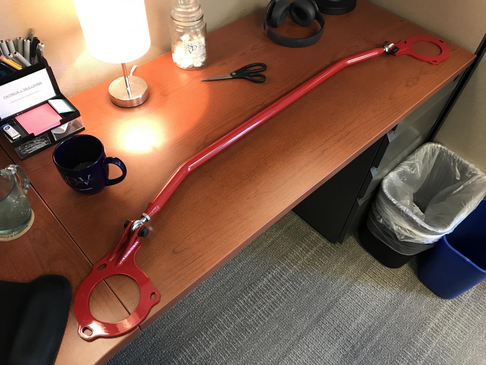 1st attempt at installation, I was way too confident haha. I was like, "this is gonna be a breeze, how hard could it be?" Well... I just thought that those black bolts and nuts would just clamp down on the heim joints and voila, Strut Brace installed... Not that simple. Got the base towers connected and tightened, then I tightened the black bolts, tightened the silver nuts to the bar. The bar still had a couple INCHES of play to the front and to the back. I had no idea why it was still moving when everything was tight. Ended up taking it off, calling dad and he ended up being just as confused as me as to why it was so difficult.