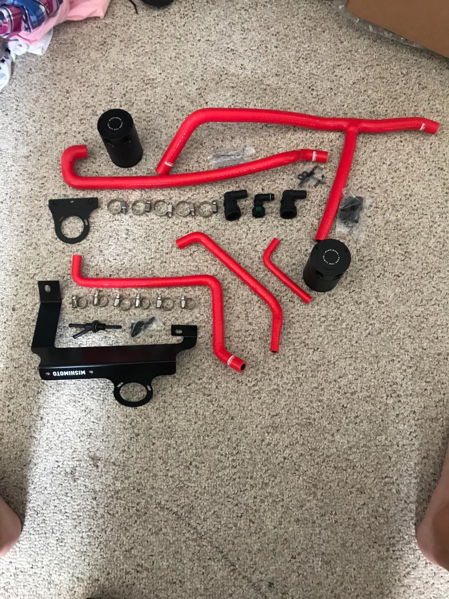 Also go these installed the same day as the Strut Brace. These were super simple to install! Mishimoto has installation videos that literally walk you through the process step by step. Hats off to Mishimoto for that and also for having great quality products. The toughest part of this install was getting the old PCV tube off of the engine bay. Even that only took a couple minutes to get those tools to fit in and pop the connections off.