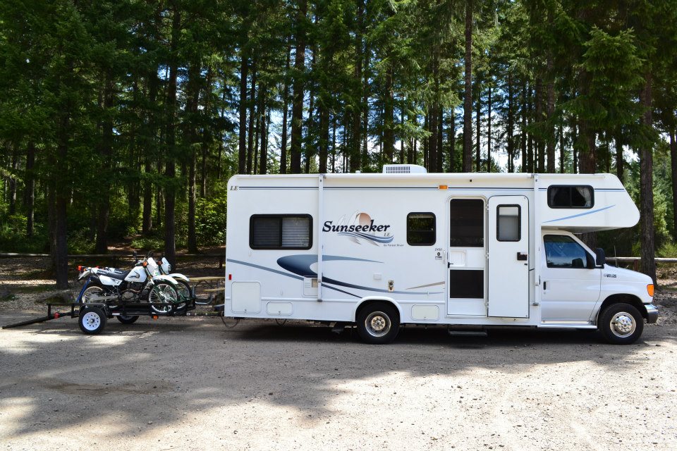 We ride Dual Sports. Whenever we take the motorhome camping we usually pull them on our utility trailer.