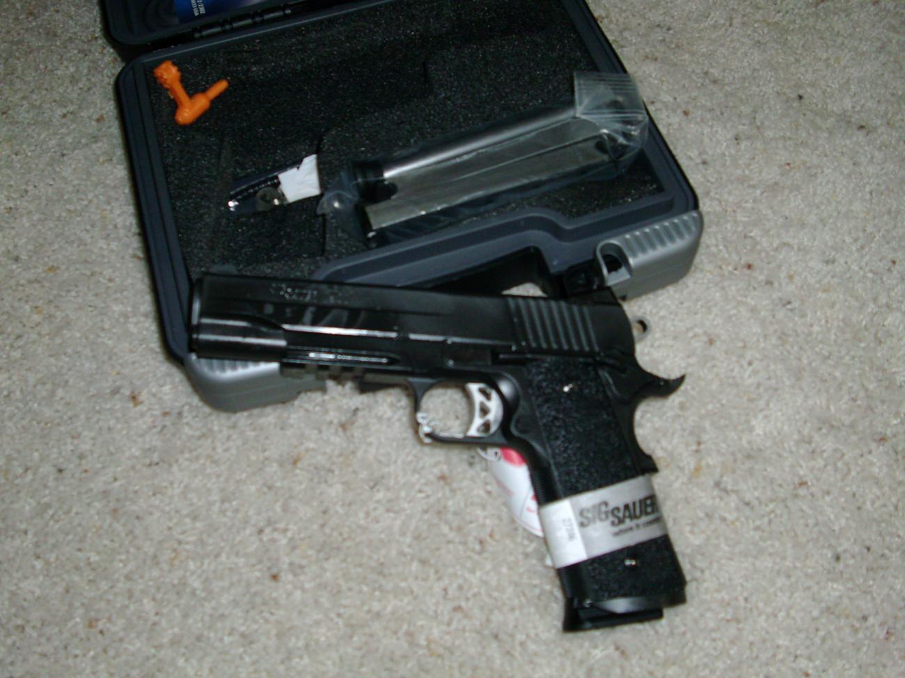 Its a sig sauer 1911R-45-tacops. They make a simialr "tacpac" model that is a little cheaper, but I wanted the ambi safety etc. This one comes with 4 mags too, hopefully shooting soon. (I have 11.5 yards of rock sitting in the driveway now for a landscaping project though.... FML.