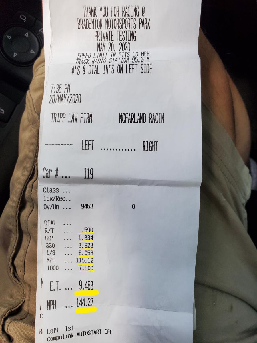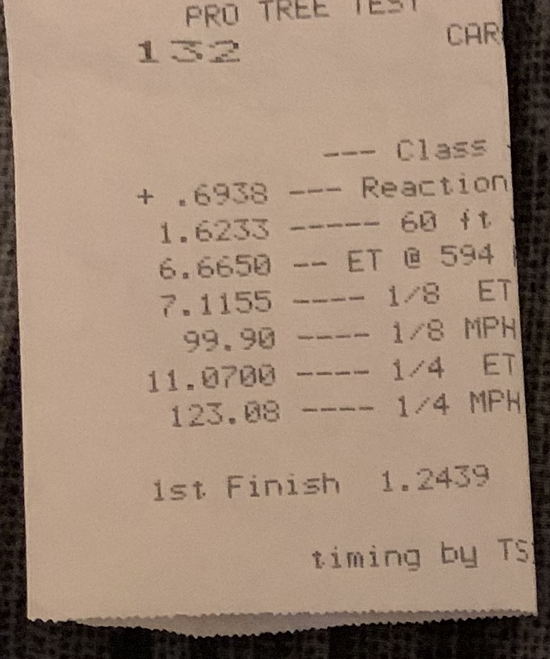 If the 60ft was a 1.7 and his mph was 143, the car wasn't leaving the line on kill. It has the MPH to run 9's.