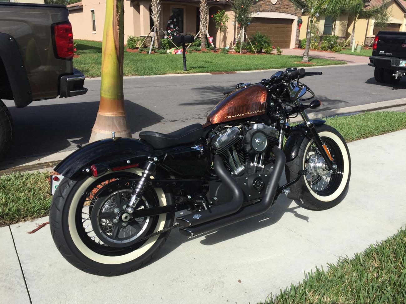 2014 forty eight with Vance and Hines short shots and srage 1 intake Vance and Hines, white walls tires drag bars, headlight visor,