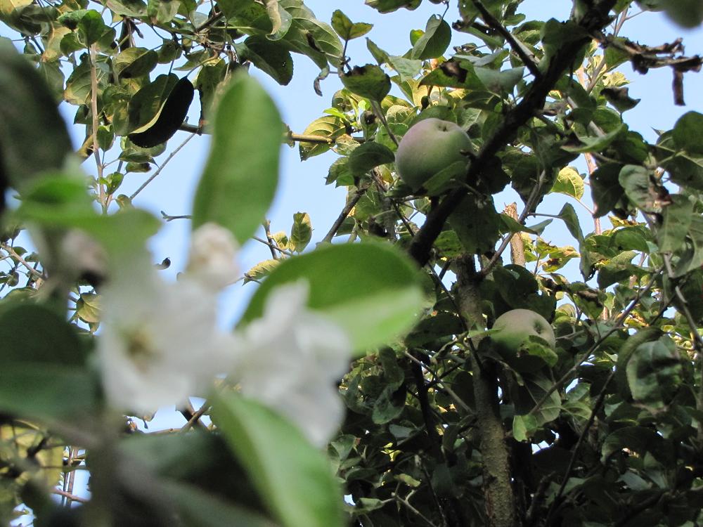 ![]() I couldn't find the picture I thought I had taken in Long Beach a couple weekends ago. Too bad, it had a cool story to go with it. Oh well, it's Fall. The sun is shining and the apple trees are blooming....wait...yes my apple tree is blooming. This picture was taken this week. It's just a couple of branches, but it's happened before. Anybody got any explanations? If you think I'm pulling your leg; you can see the apples in the background. You'll notice that the apples on the other branch aren't even ripe yet. Weird tree! Sorry I forgot to congratulate you on your trip Jeanette. That's pretty cool. Wish my company would send me someplace where I didn't have stand around at a trade show.