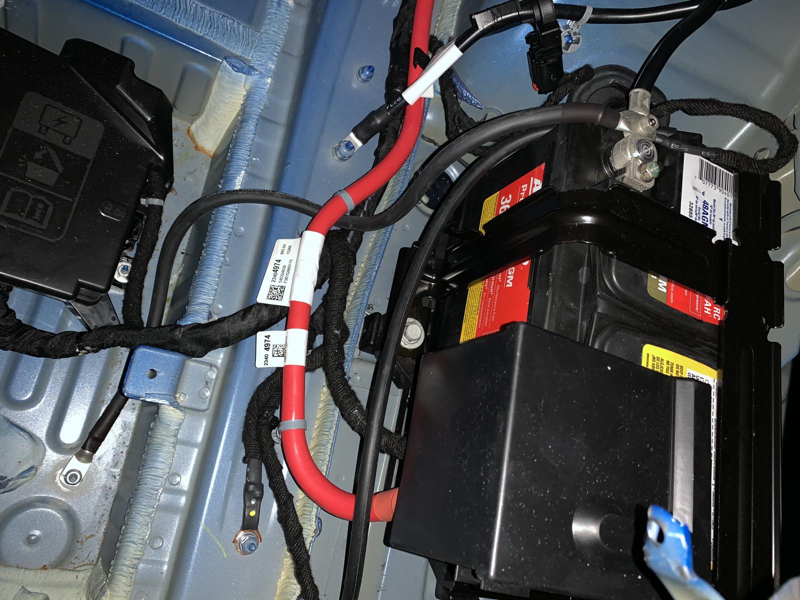 Update 12/30/20: With the saying in mind that if one is good then two would be better - I added another ground. This time I took on the other end of the car and added another ground from the battery's negative post to the floor of the trunk. This cable is a little smaller (2.0 guage) and I bought it off of Amazon for $14.00. I placed the body end of the ground on a unused threaded stud sticking up out of the trunk floor (look to the lower far left in the photo). I have no idea if another ground is helpful and needed . I just added it for peace of mind - plus it was easy and cheap.