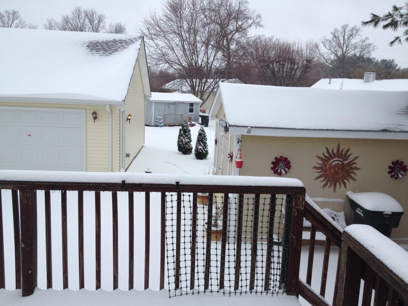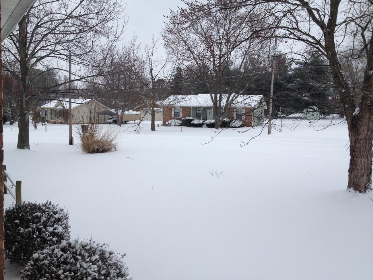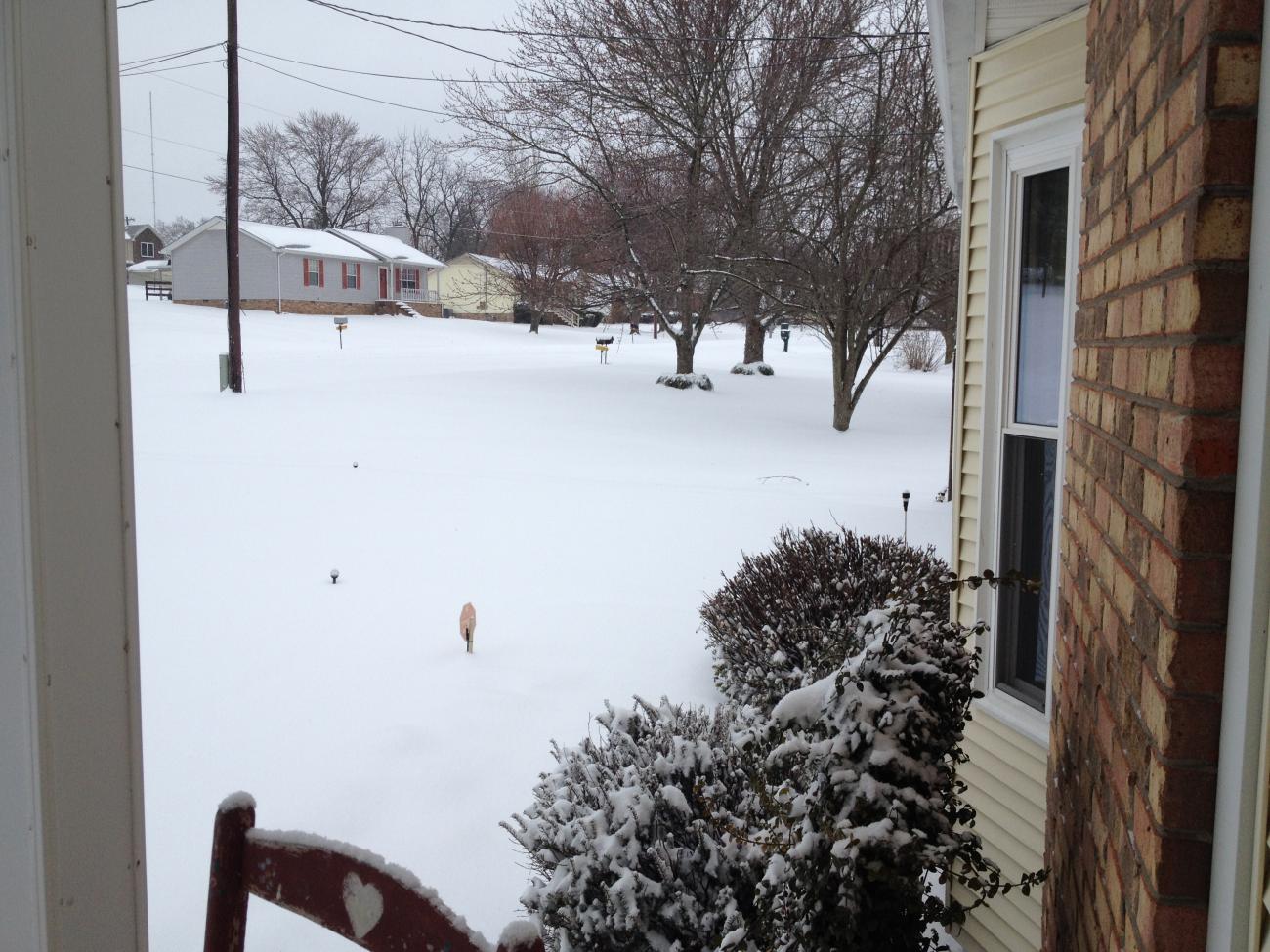 A snapshot look'n out my front door. The three to six inches of forecasted snow is already over seven, and it's going to snow until mid nite or so......
