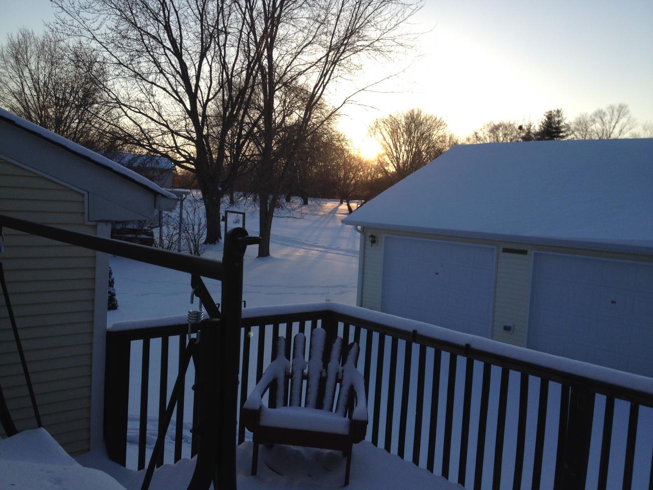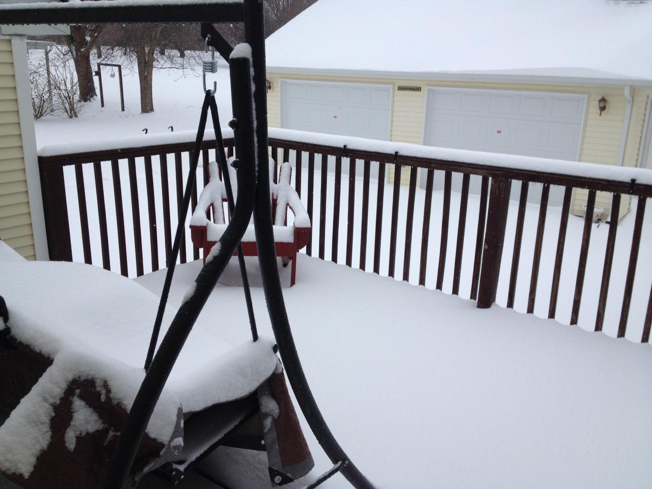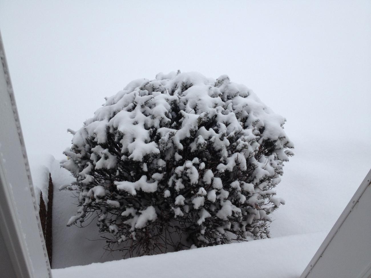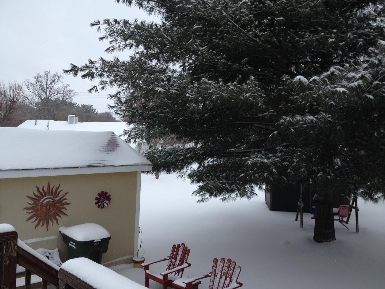 A snapshot look'n out my front door. The three to six inches of forecasted snow is already over seven, and it's going to snow until mid nite or so......