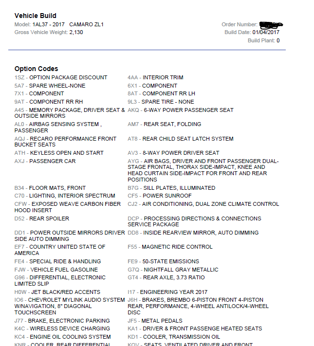 Went ahead and asked for my ZL1 again too. Screenshot attached to show the build sheet example