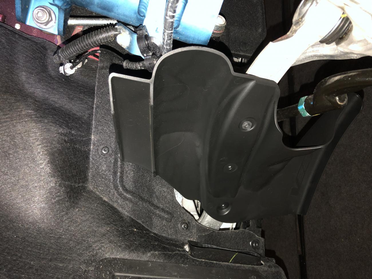 All you need to do is trim the backing plate just below the caliper to mimic the area just above the caliper. No way for material to get into the parking brake. Be sure to not trim too much so that you don't uncover the knuckle bushing is the only caution. Pic 1 is just above the caliper Pic 2 is just below the caliper Both are of the driver's side Keep in mind that this adds a little weight, split between sprung/unsprung...........