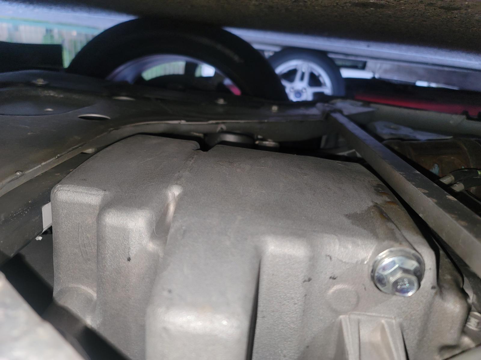 This time the oil looks like it’s running down from above, if you look close by the drain plug it looks dry around it